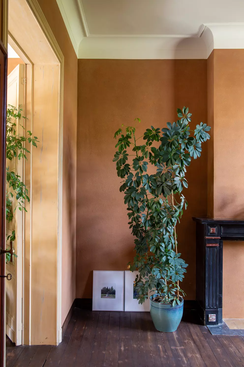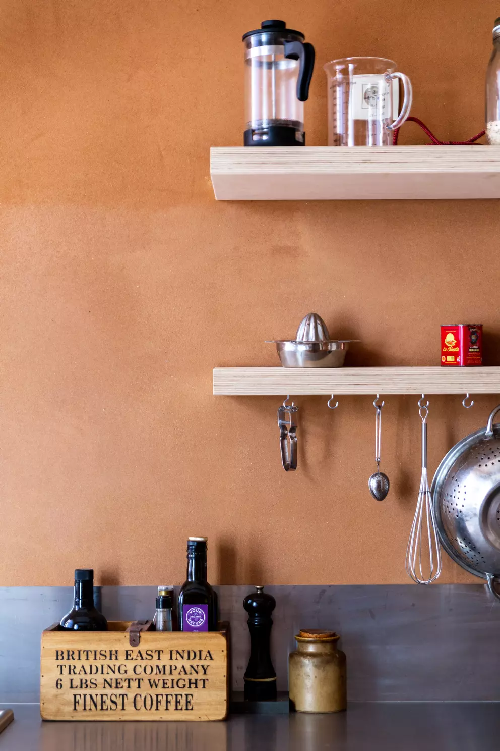 Léém Dunleempleister afwerking wordt gebruikt als een gladde afwerking, op een basispleister van klei, met alle gezondheids- en ecologische voordelen van kleipleister: circulariteit, geen koolstof en geen afval.