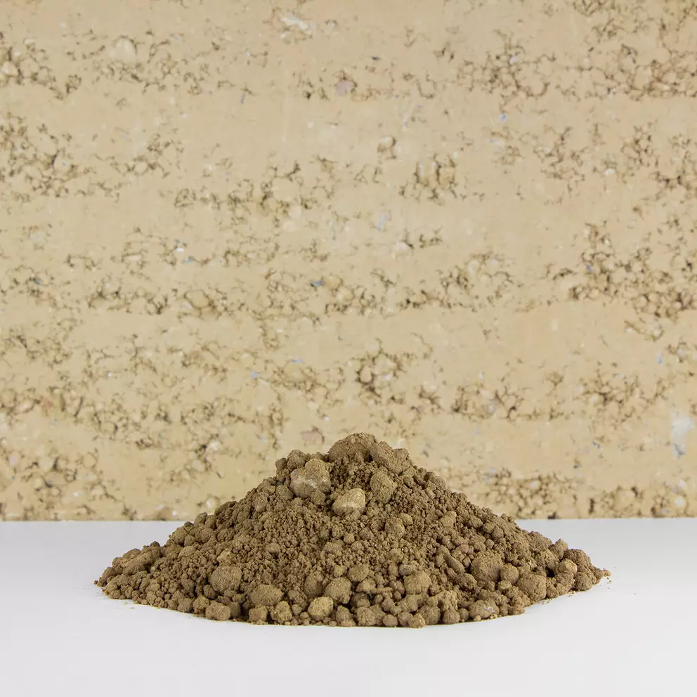 Aangestampte aarde is een mengsel van klei, zand en grind dat wordt gemengd en samengeperst in een bekisting om oppervlakken, muren, vloeren en designstukken te maken. Verkrijgbaar in kant-en-klare vochtige big-bags. De kleur van de aangestampte aarde hangt af van de klei. Voor muren en elementaire stukken worden de unieke lagen aarde meestal zichtbaar gelaten als afwerking.