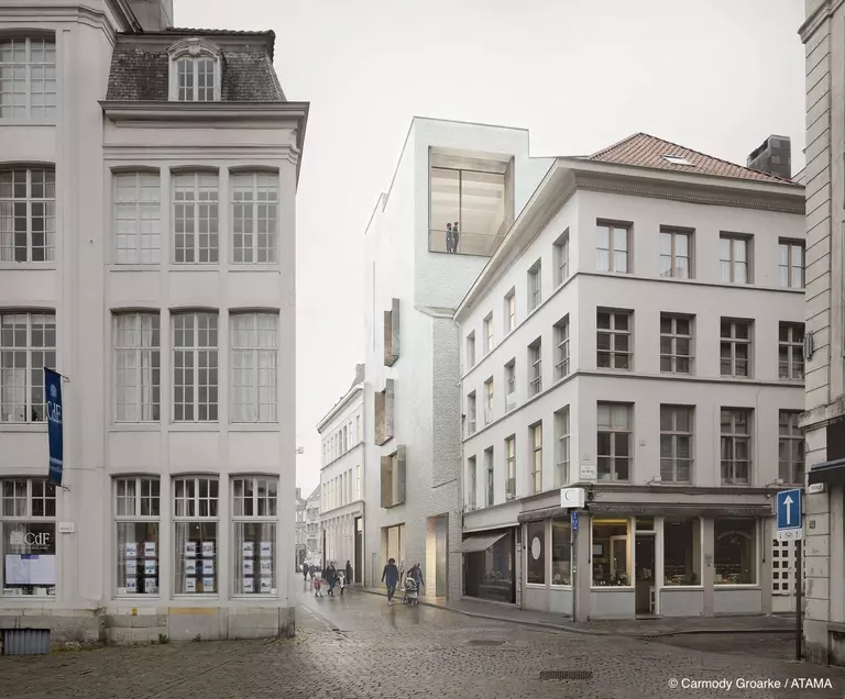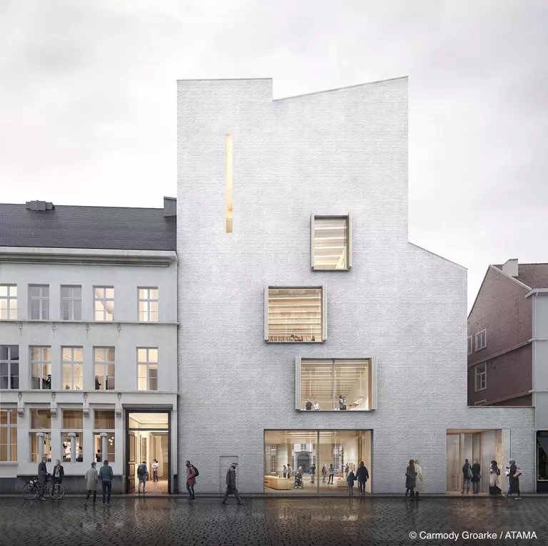 To lower the embodied carbon used in the project’s construction and meet the client's brief for the new extension, a lime-cured, local waste brick has been developed and certified for use on the building’s façade. The project has been funded through a generous grant from Circular Flanders and sogent, on behalf of the City of Gent, and researched in collaboration with Design Museum Gent, sogent, Carmody Groarke, BC Materials, Local Works Studio and TRANS architects.