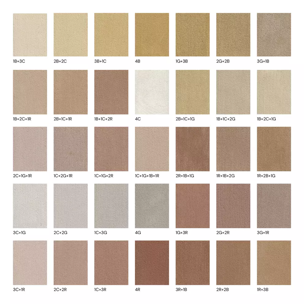 Léém Clay Paint is available in four natural colours: Cream, Grey, Brown & Red. When mixed together, the palette can expand to 35 unique colours.