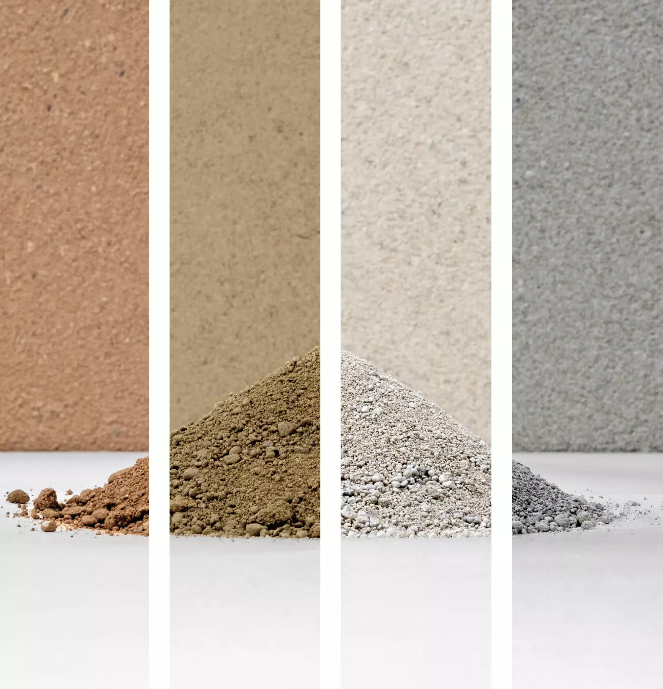 Léém Plaster COARSE is available in four natural colours: Cream, Grey, Brown & Red.