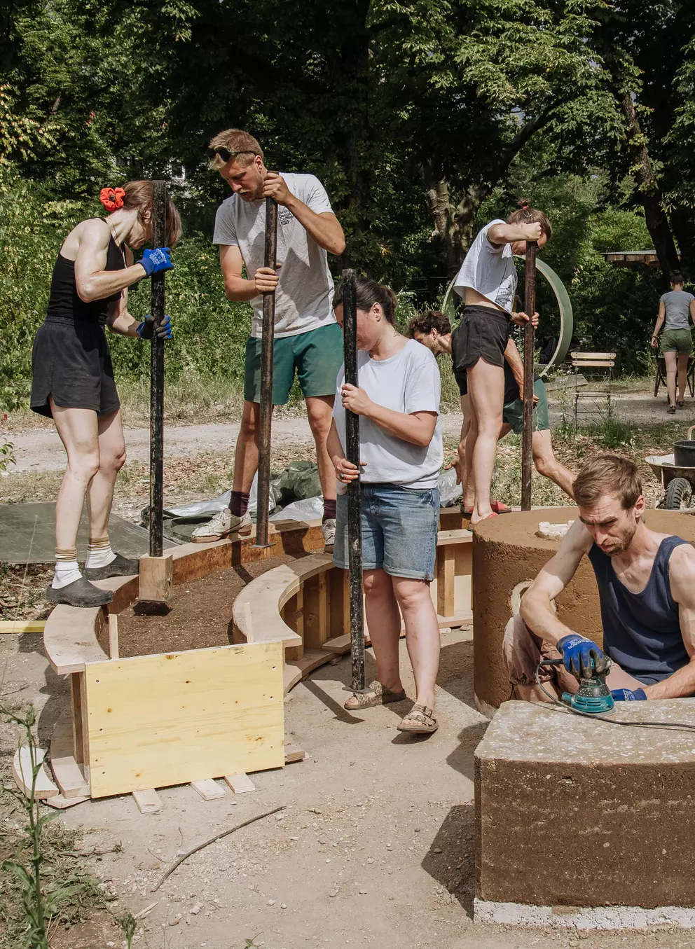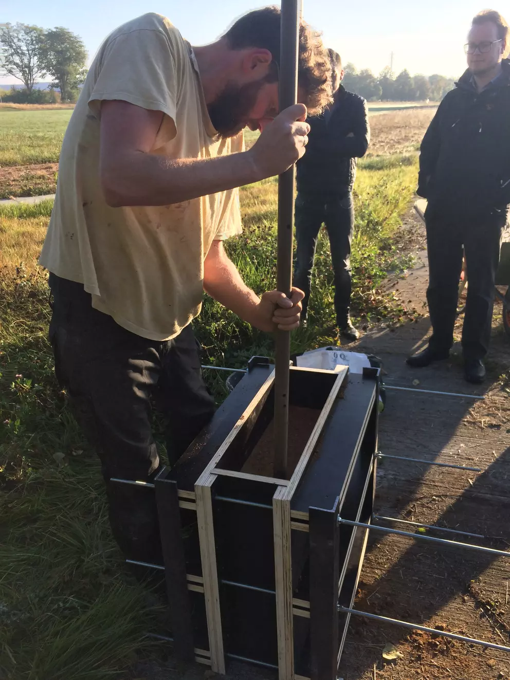 Manual metal rammer to compress rammed earth. We offer them in several sizes: